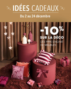 Du 2 au 24 décembre, profitez de -10% sur la déco dès 999€ d’achat de meubles !