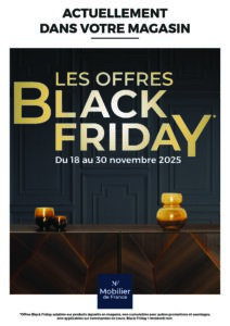 Les offres Black Friday chez Mobilier de France c’est du 18 au 30 novembre 2025.