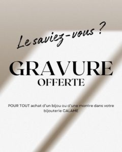 Dans votre Bijouterie Calame , la gravure est offerte, parce qu’un bijou ou une montre devient encore plus précieux lorsqu’il raconte une histoire.